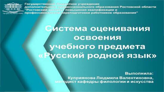 Презентация "Система оценивания освоения учебного предмета «Русский родной язык»"