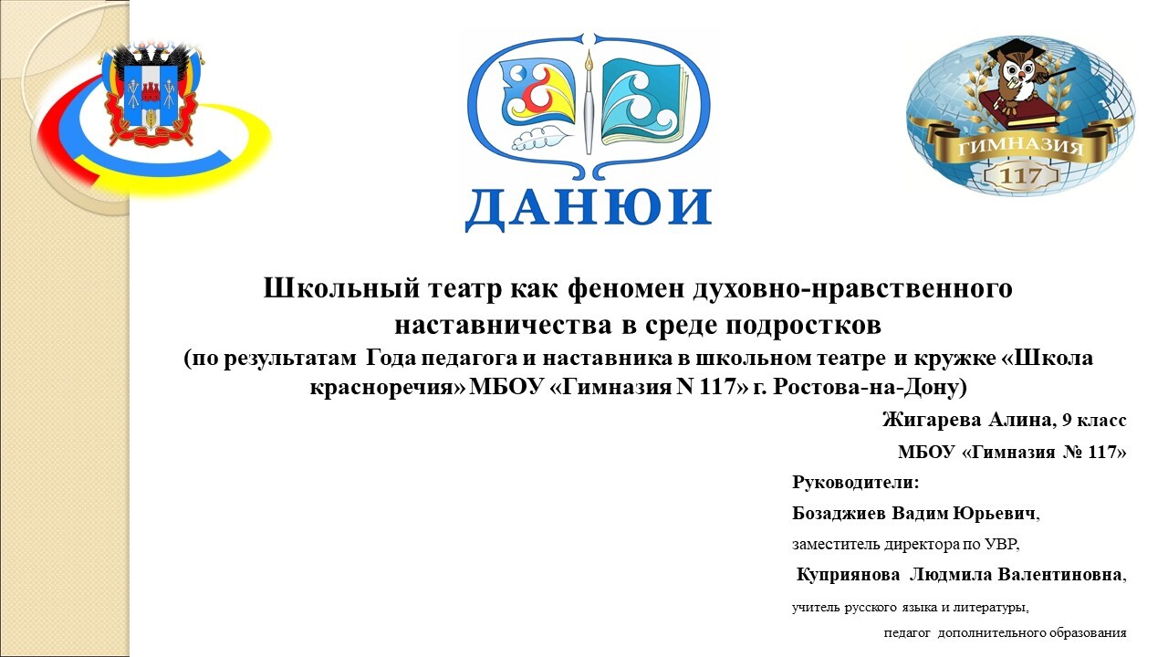 "Театральная педагогика как система передачи социального и творческого опыта: использование возможностей наставничества в школьном театре"